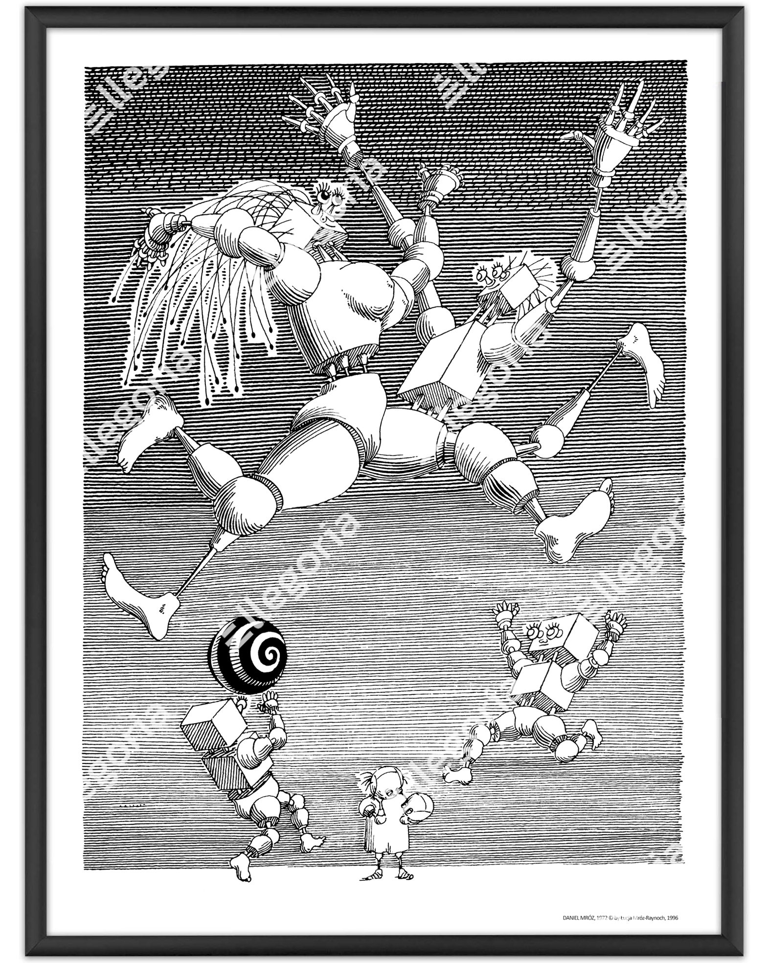 Ilustracja Daniela Mroza do opowiadania “Altruizyna czyli opowieść prawdziwa o tym, jak pustelnik Dobrycy kosmos uszczęśliwić zapragnął i co z tego wynikło” z Cyberiady Stanisława Lema.