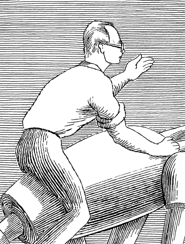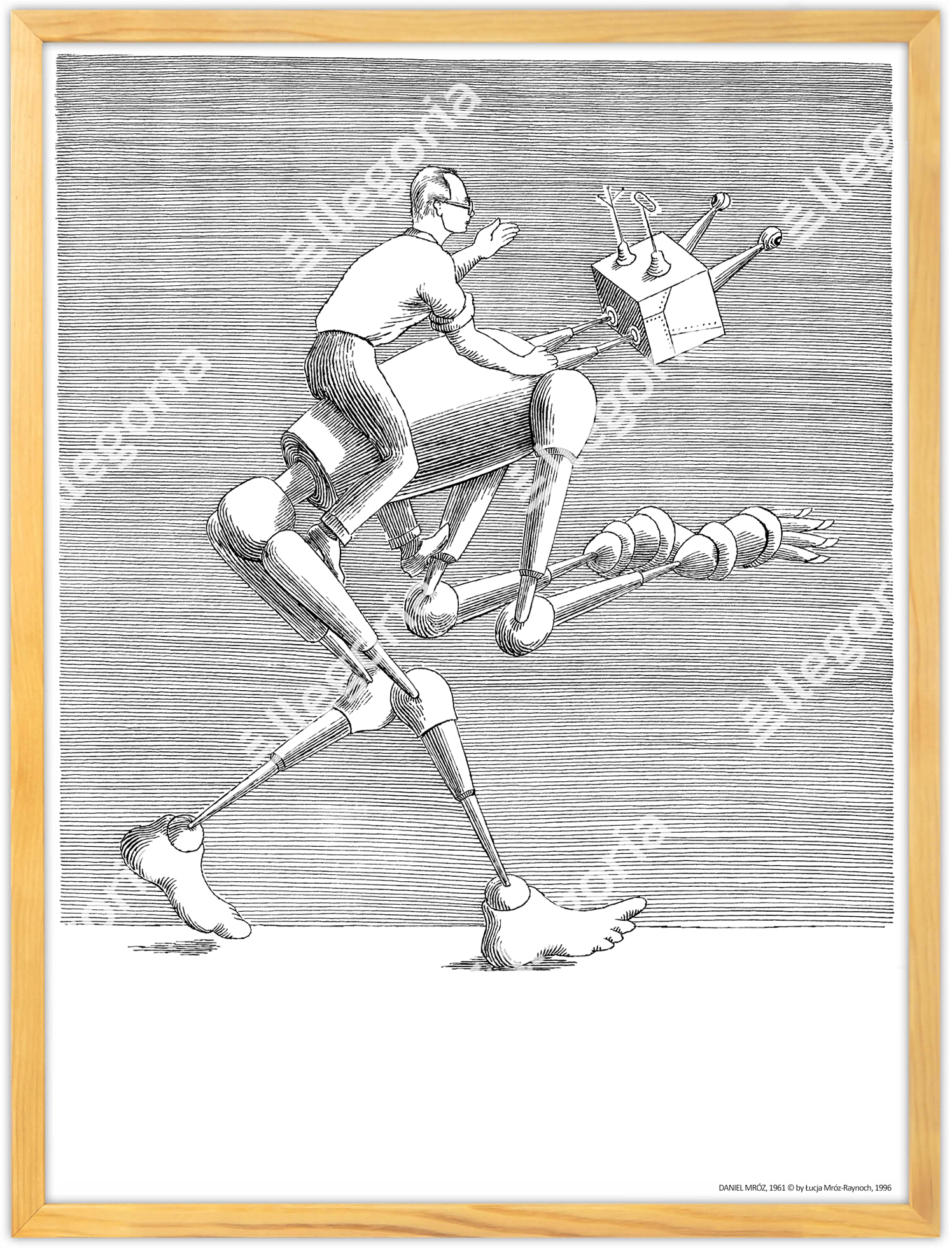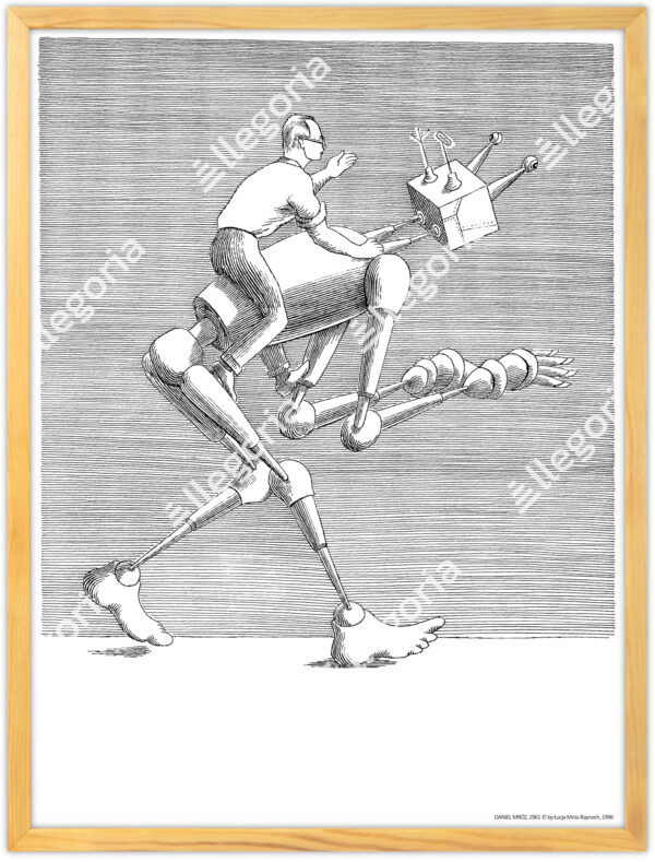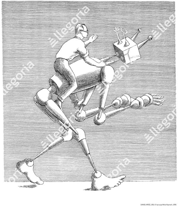 Ilustracja okładki Księgi robotów Stanisława Lema, po raz pierwszy wydanej nakładem wydawnictwa Iskry w roku 1961. Książka często bywa mylona z „Bajkami robotów”, których zawartość jednak jest zupełnie inna. Grafika przedstawia charakterystyczną sylwetkę Lema na grzbiecie jednego ze swoich robotów.