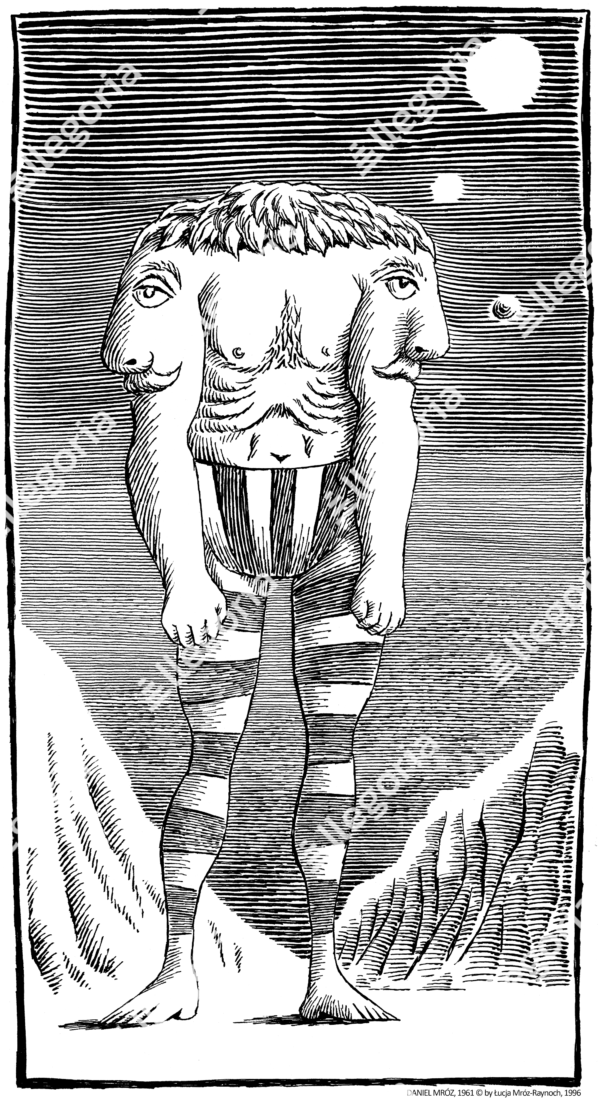 Meodracyci według Daniela Mroza. Ilustracja do “Podróży dwudziestej piątej” Dzienników gwiazdowych Stanisława Lema, przedstawiająca mieszkańców obcej planety, którzy mieli, jak wiadomo, uszy pod pachami.
