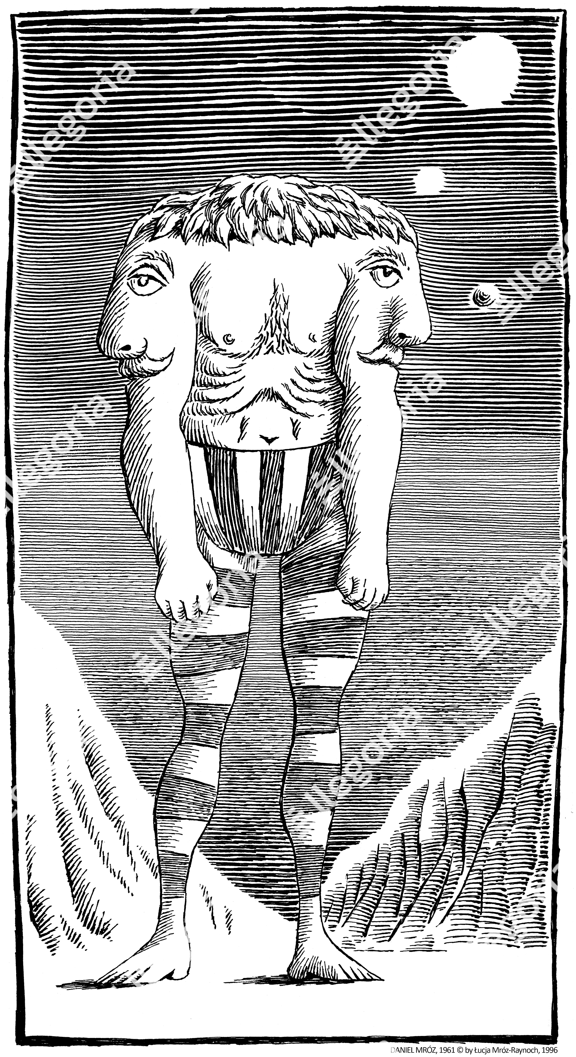 Meodracyci według Daniela Mroza. Ilustracja do „Podróży dwudziestej piątej” Dzienników gwiazdowych Stanisława Lema, przedstawiająca mieszkańców obcej planety, którzy mieli, jak wiadomo, uszy pod pachami.