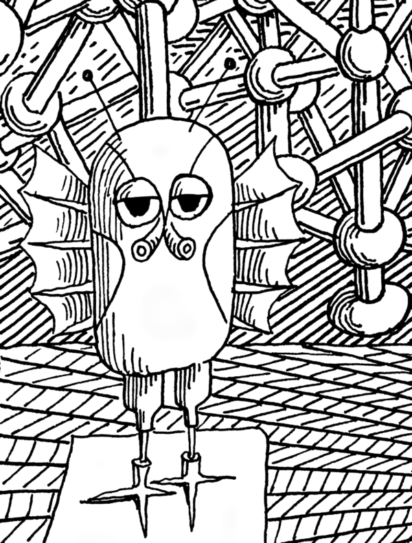Trurl według Daniela Mroza. Ilustracja do opowiadania “Wyprawa pierwsza, czyli pułapka Gargancjana” z Cyberiady Stanisława Lema.