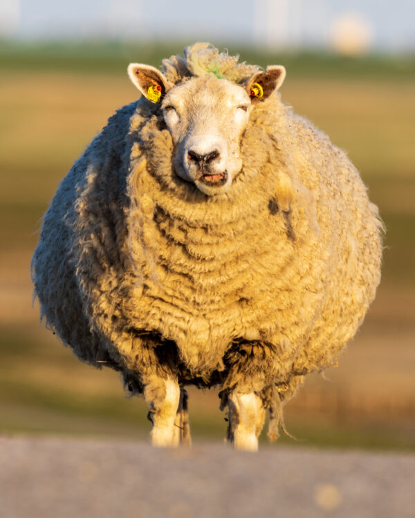 Detale: Owca jest szczegółowo odwzorowana, z dokładnie zaznaczoną strukturą wełny, co nadaje jej realistyczny wygląd. Delikatne cienie i kontury podkreślają trójwymiarowość postaci.