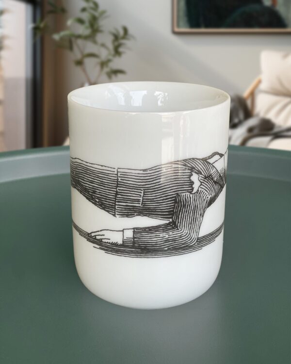 Kubek wykonany został ze szlachetnej białej, cienkościennej, transparentnej porcelany premium. Grafika nadrukowana wokół kubka, co w połączeniu z wzorem rączki-strzałki, daje ciekawy efekt.