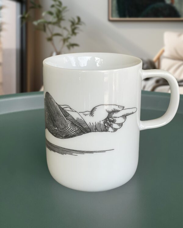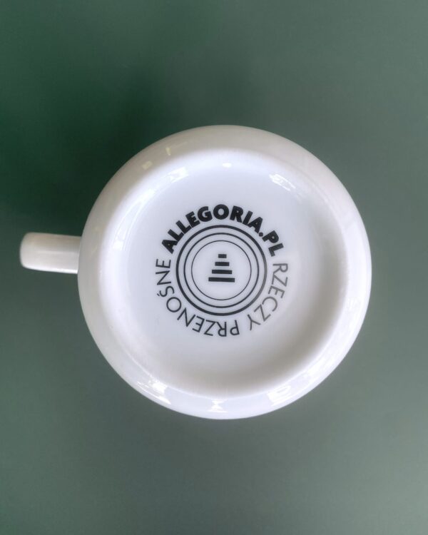 Kubek wykonany został ze szlachetnej białej, cienkościennej, transparentnej porcelany premium. Grafika nadrukowana wokół kubka, co w połączeniu z wzorem rączki-strzałki, daje ciekawy efekt.