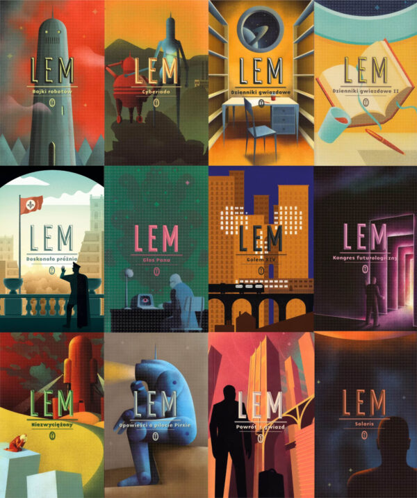 Zestaw obejmuje zarówno teksty programowe dla Lemowskiej wizji przyszłości (Golem XIV, Głos Pana, Kongres futurologiczny), jak i literacko dopracowane klasyki gatunku (Solaris, Niezwyciężony, Eden). Wszystko w nowym opracowaniu graficznym autorstwa Przemka Dębowskiego.