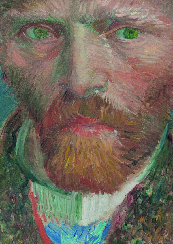Vincent van Gogh namalował około 35 autoportretów, co czyni go jednym z artystów najczęściej ukazujących samego siebie w historii sztuki. Cechą charakterystyczną prezentowanego obrazu jest żywa, niemal agresywna kolorystyka, dynamiczne pociągnięcia pędzla oraz niezwykła ekspresja. Zielonkawe tło i światło nadają twarzy artysty surowość, a spojrzenie wydaje się pełne napięcia i introspekcji.