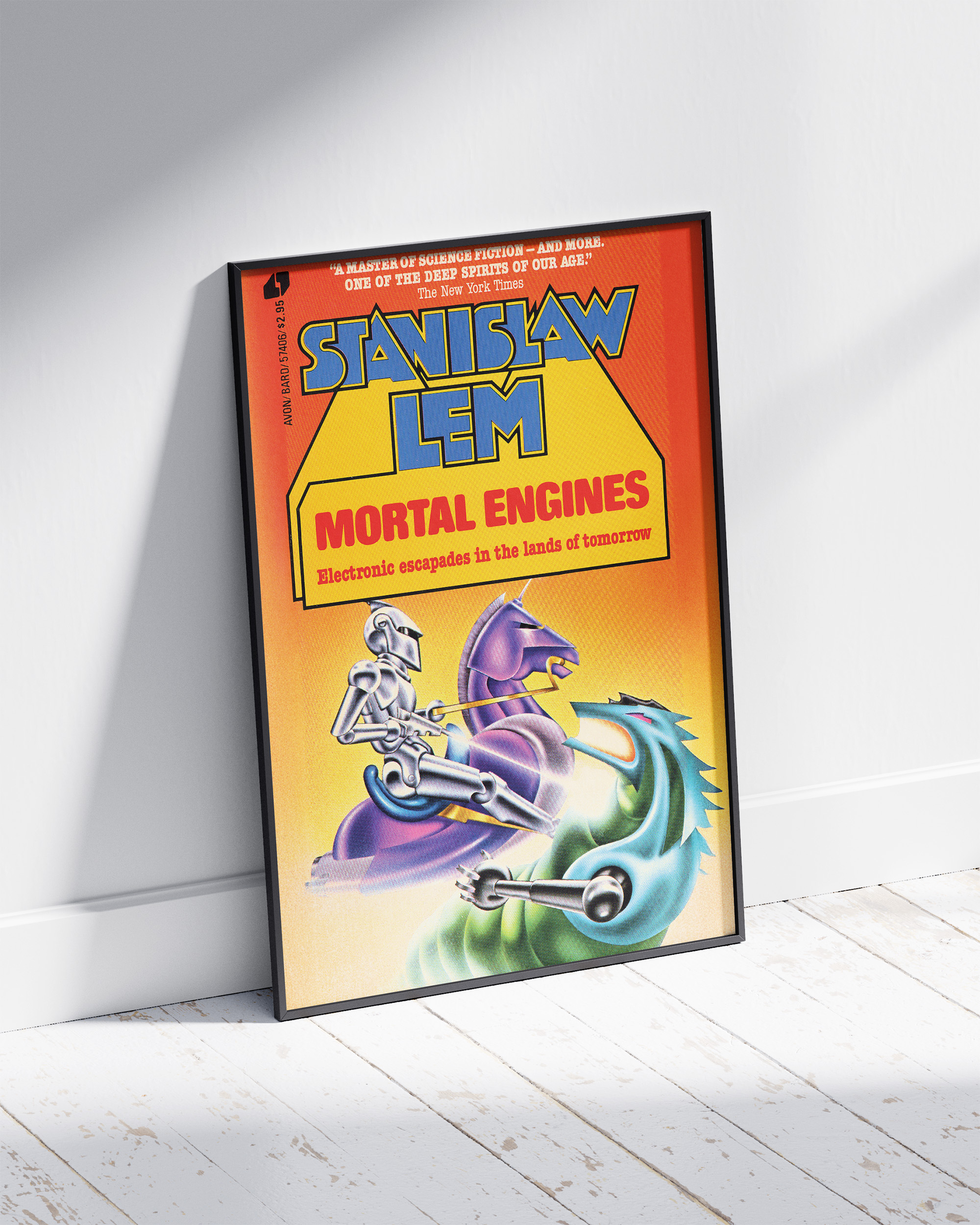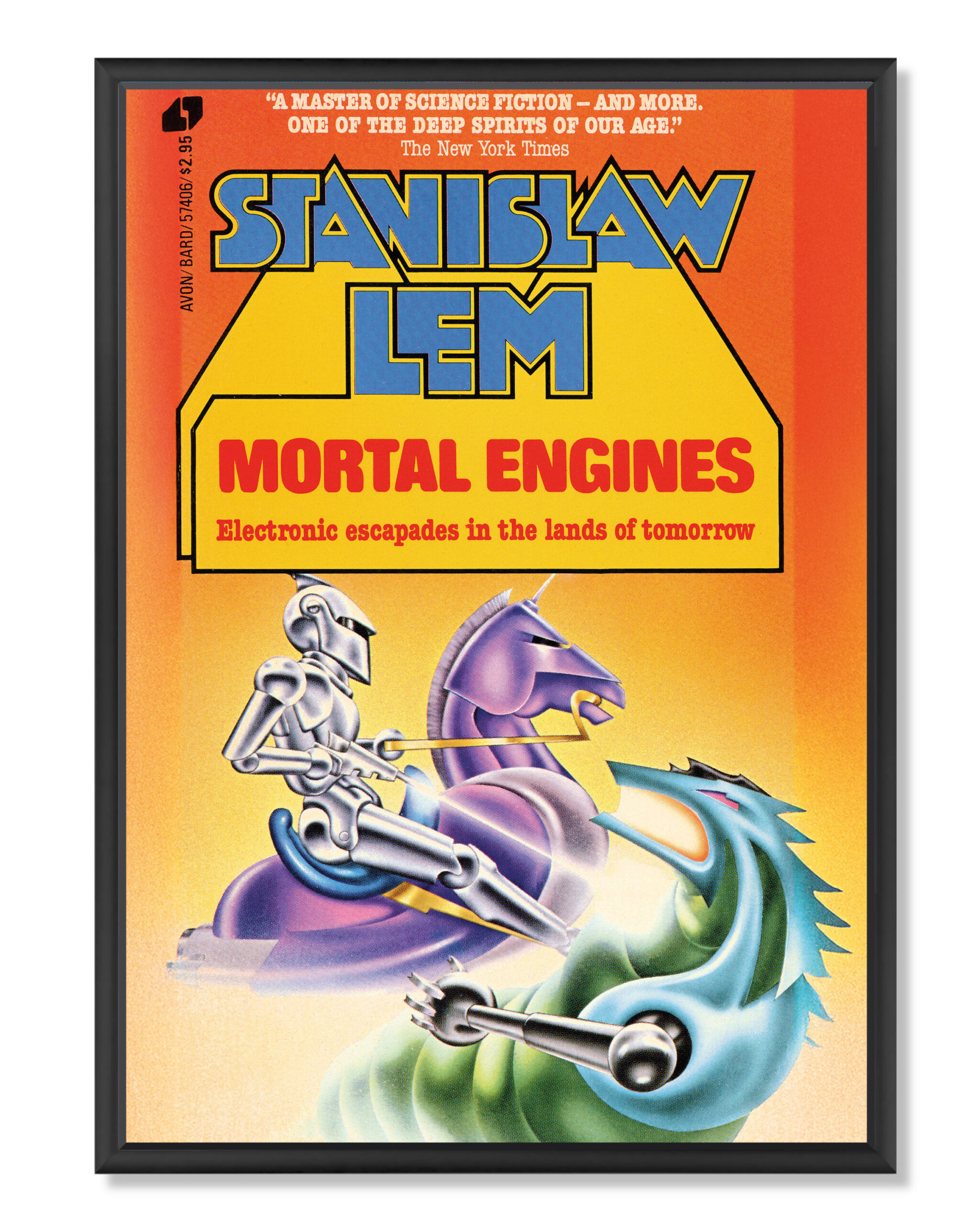 Plakat z okładką angielskiego wydania “Bajek robotów” z 1982 roku. Wydruk cyfrowy na grubym matowym papierze niepowlekanym 350 g o wysokiej archiwalnej jakości, zapewniającym intensywne kolory.