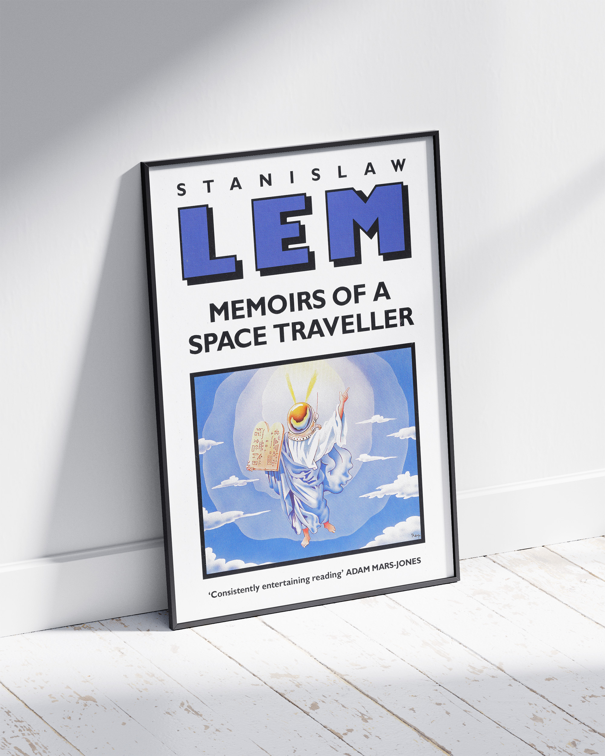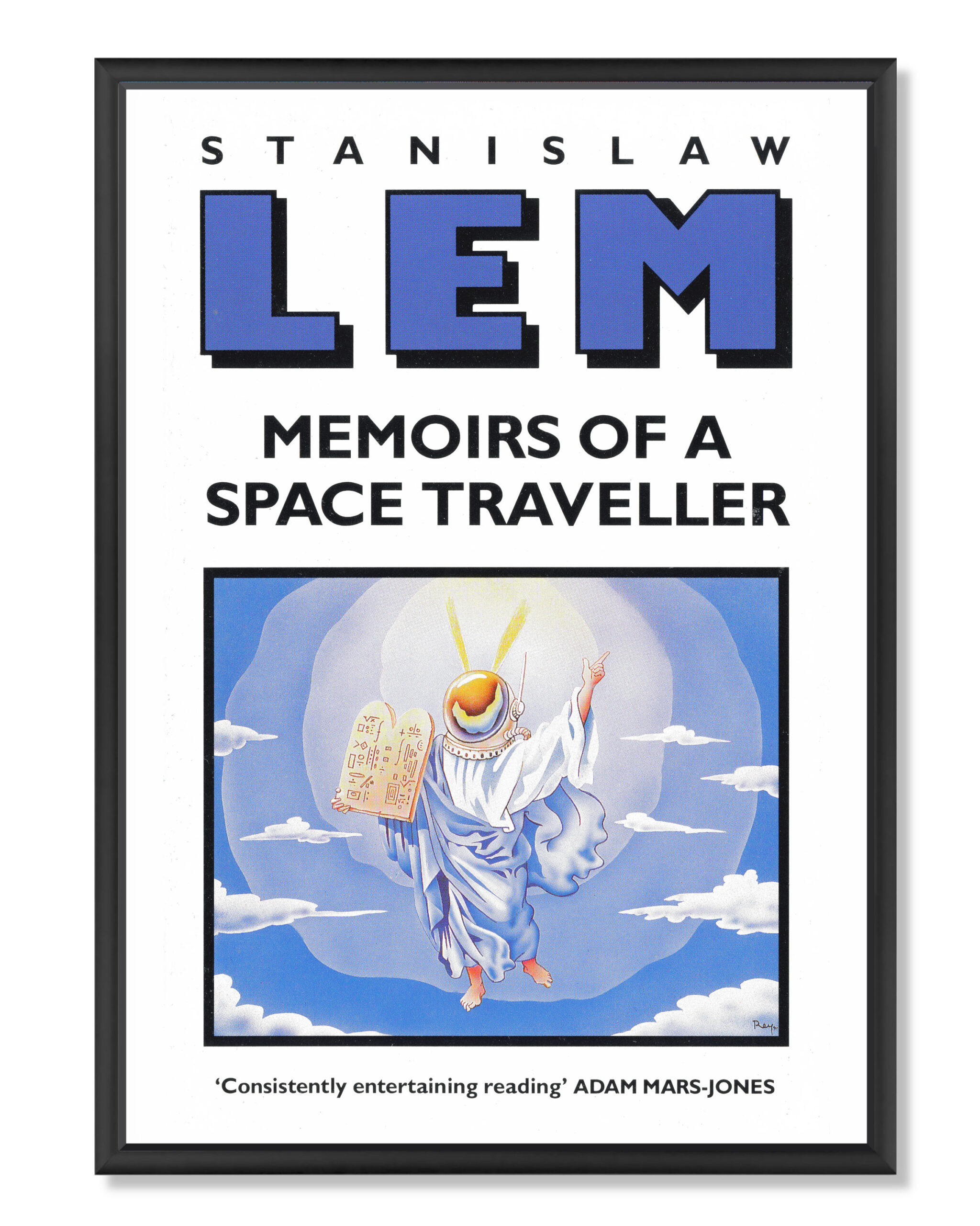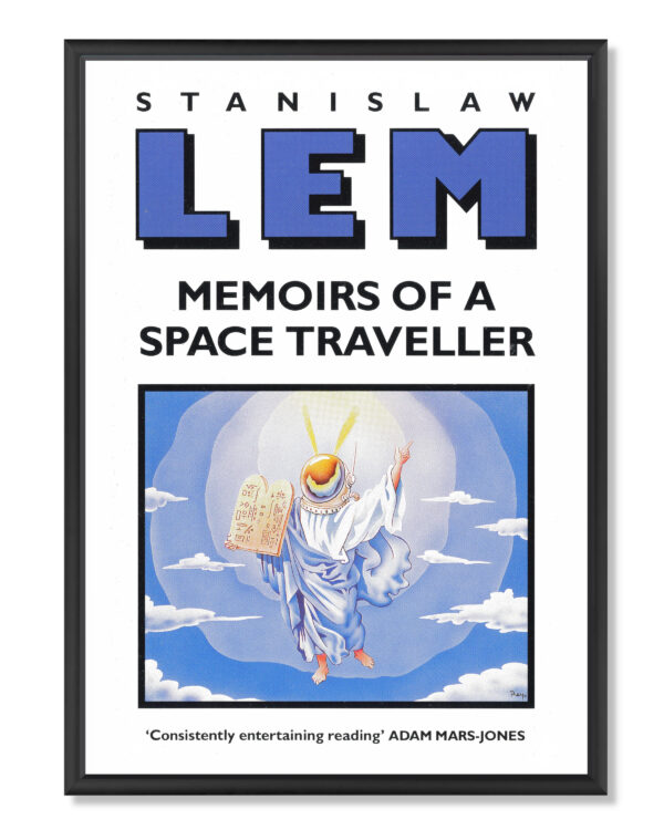 Plakat z okładką angielskiego wydania drugiej części “Dzienników gwiazdowych” (“Memoirs of a Space Traveller: Further Reminiscences of Ijon Tichy”) z 1991 roku. Wydruk cyfrowy na grubym matowym papierze niepowlekanym 350 g o wysokiej archiwalnej jakości, zapewniającym intensywne kolory.