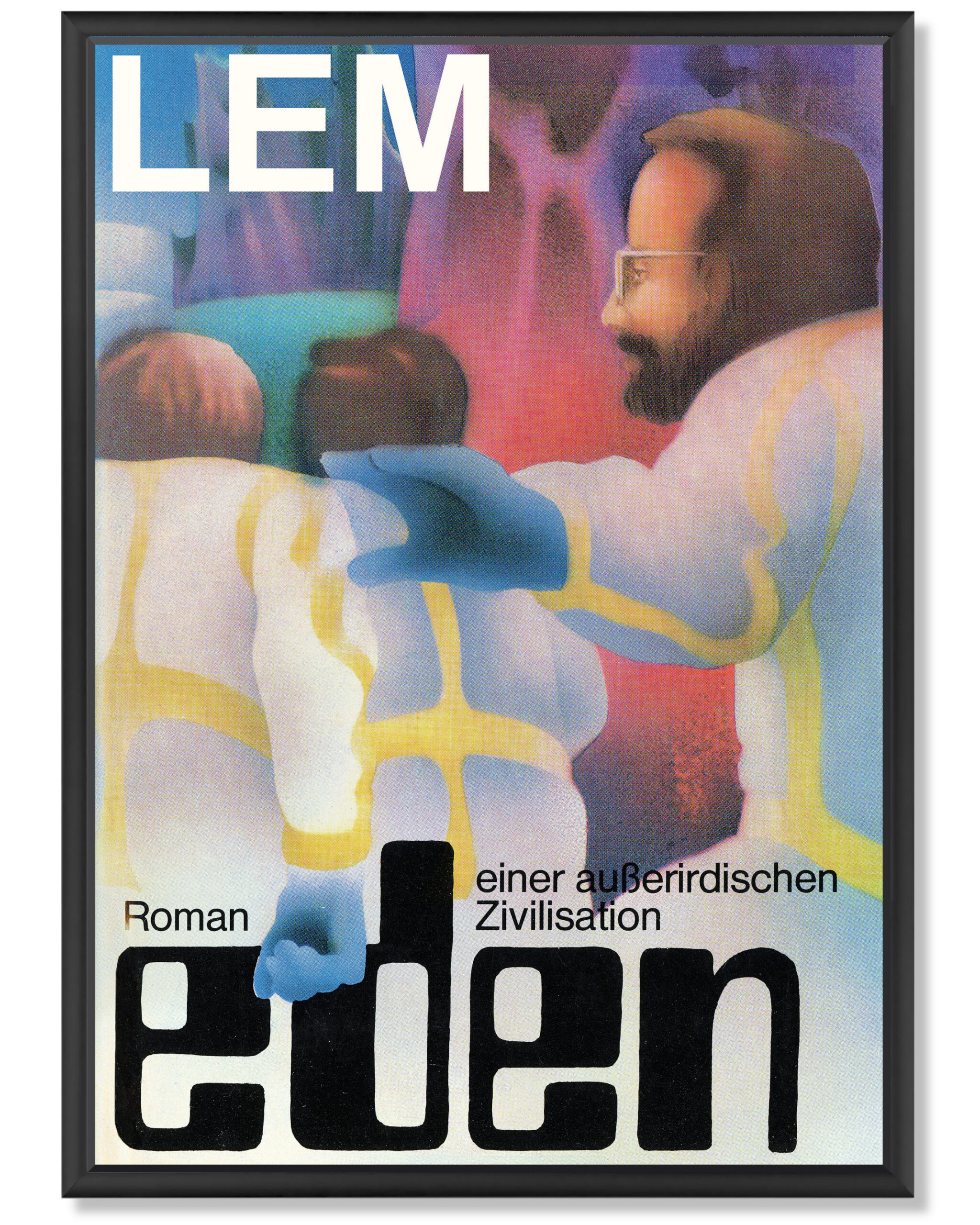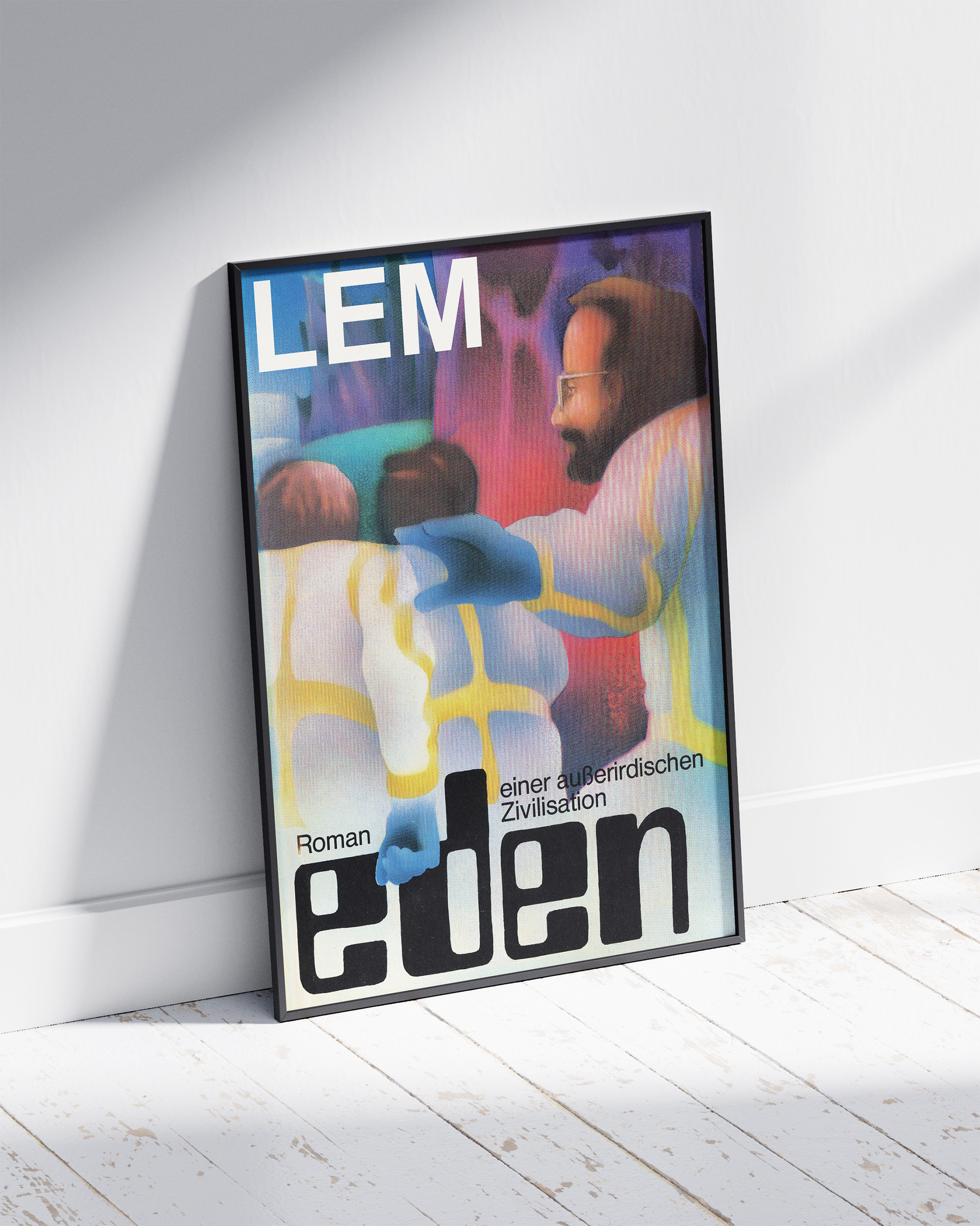 Plakat z okładką nimieckiego wydania “Edenu” z 1972 roku. Wydruk cyfrowy na grubym matowym papierze niepowlekanym 350 g o wysokiej archiwalnej jakości, zapewniającym intensywne kolory.