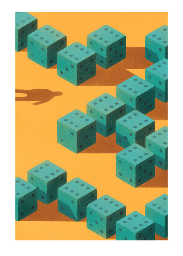 Plakat Przemka Dębowskiego do książki “Katar” Stanisława Lema. Wydruk cyfrowy na grubym matowym papierze niepowlekanym 250 g o najwyższej archiwalnej jakości. Plakat bez podpisu autora.