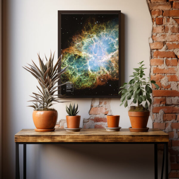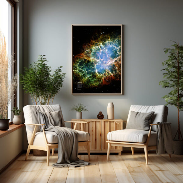 Plakat ze zdjęciem Mgławicy Kraba, złożonych z 24 ekspozycji wykonanych za pomocą Kosmicznego Teleskopu Hubble’a NASA/ESA. Wydruk cyfrowy na grubym błyszczącym papierze niepowlekanym 250 g o wysokiej archiwalnej jakości, zapewniającym intensywne kolory grafiki.